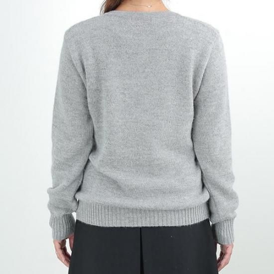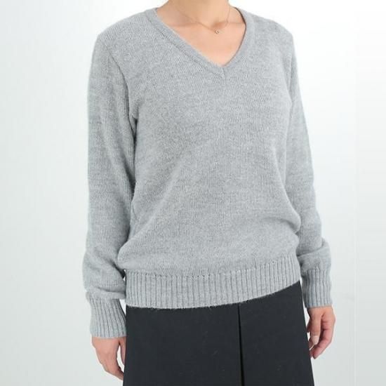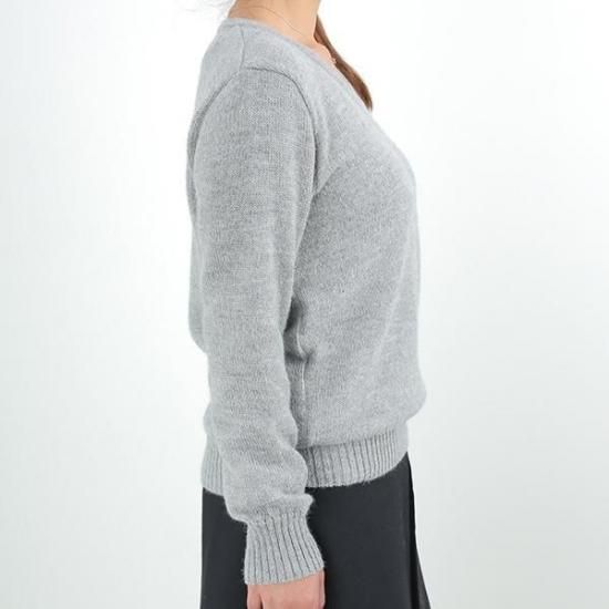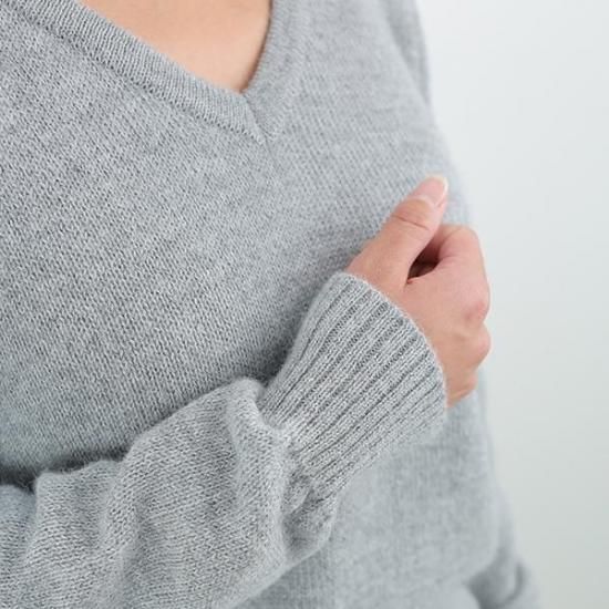 レディース ベビーアルパカ ベーシックセーター(Vネック) ライトグレー TM1508_LPV
