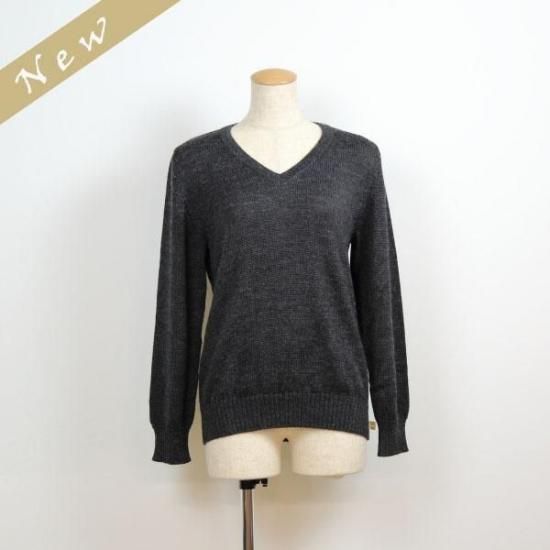 レディース ベビーアルパカ ベーシックセーター(Vネック) チャコールグレー TM1508_LPV