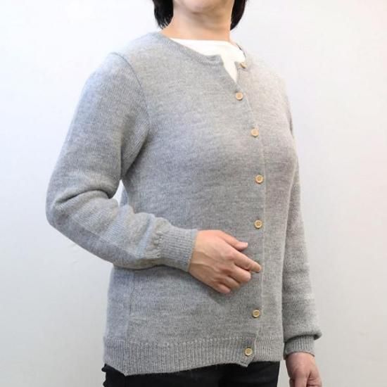 レディース ベビーアルパカ ベーシックカーディガン(クルーネック) ライトグレー TM1504_LCC