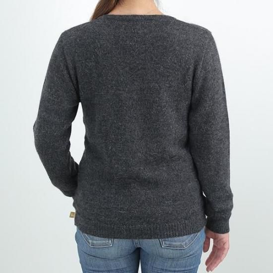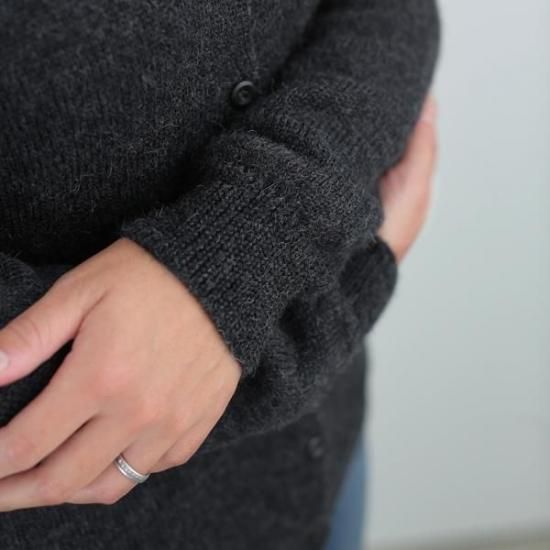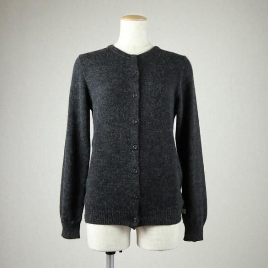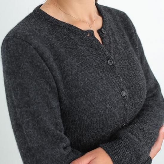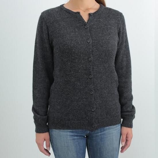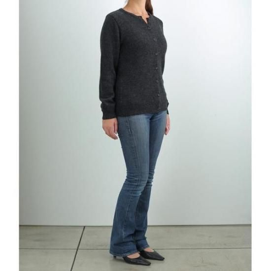 レディース ベビーアルパカ ベーシックカーディガン(クルーネック) チャコールグレー TM1504_LCC
